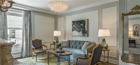 Pets are not permitted in the Eloise Suite. Guests also have the option to book an adjoining “Nanny Suite,” as the Eloise Suite does not accommodate a rollaway bed. The “Nanny Suite” is a one-bedroom Edwardian Suite, which includes a champagne and truffles amenity. Room Size: 625 sq.ft. / 58 sq.m. View: Interior Courtyard View.